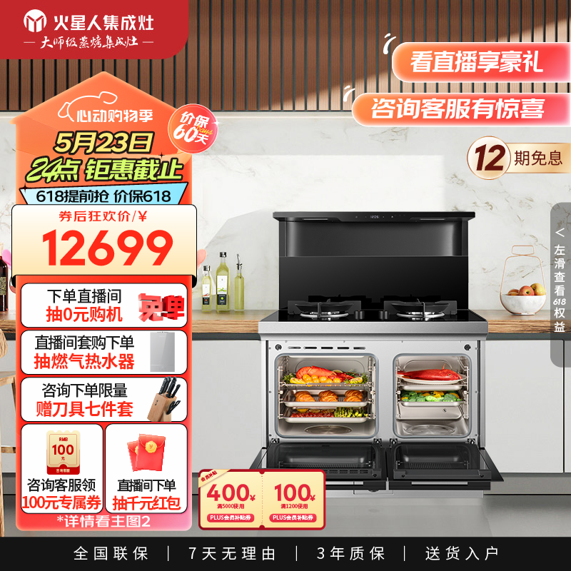 火星人ET30BCZ 集成灶蒸烤一体 左蒸烤炸右快蒸 家用蒸箱烤箱 燃气灶天然气价格:12799.00元!