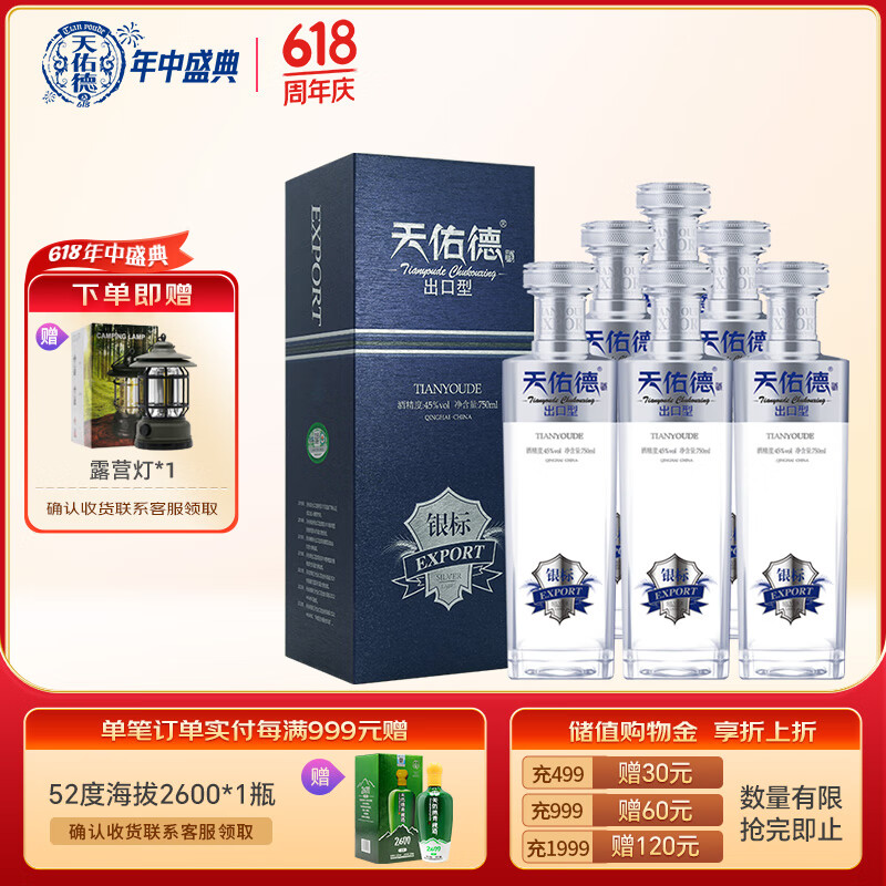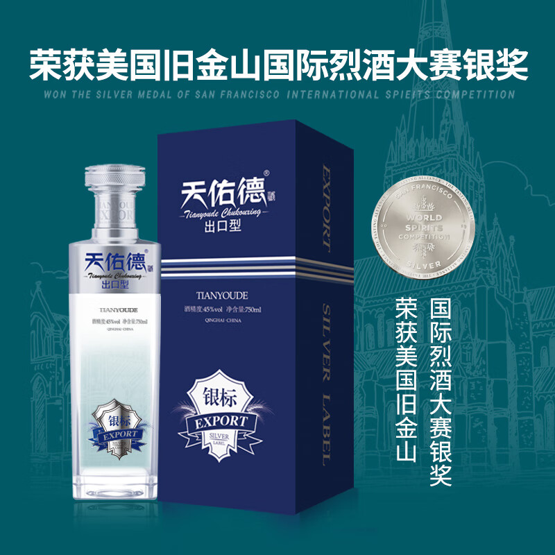 天佑德 银标出口型第三代 清香型白酒 45度 750ml*6瓶 整箱装【青稞酒】价格:1868.00元!