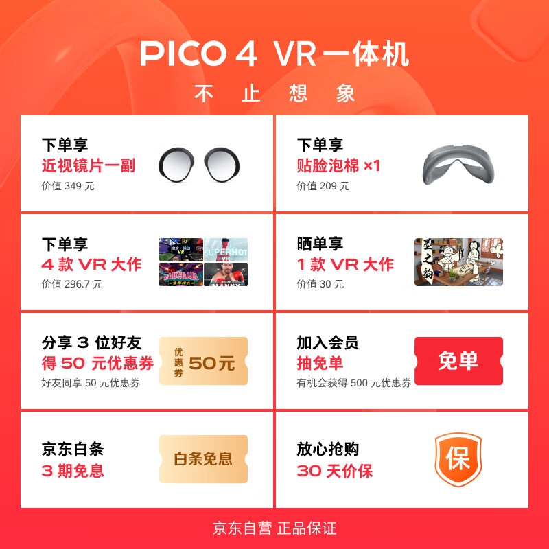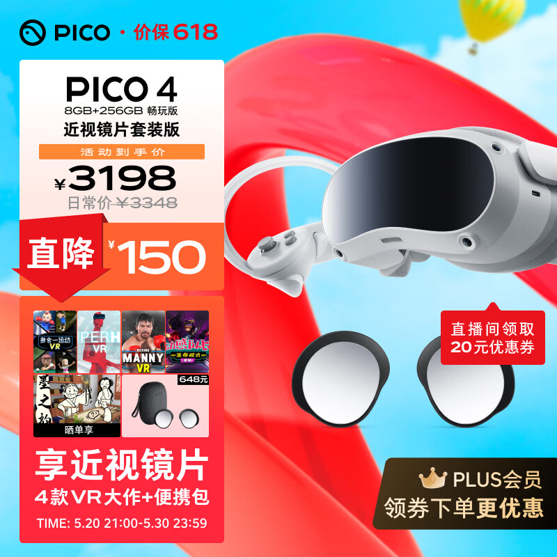 PICO4 VR 一体机 近视镜片套装 8+256G【畅玩版】【依视路镜片】VR智能眼镜 XR设备头显 体感游戏机 AR价格:3348.00元!