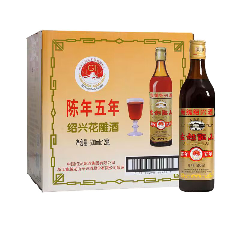 古越龙山 罗口花雕五年 传统型半干 绍兴 黄酒 500ml*12瓶 整箱装价格:202.00元!