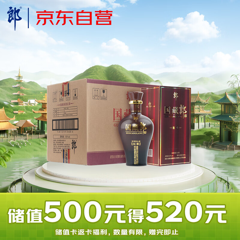 郎酒国藏郎 红尊 浓香型白酒 52度500ml*6瓶 整箱装【自饮送礼】价格:500.00元!