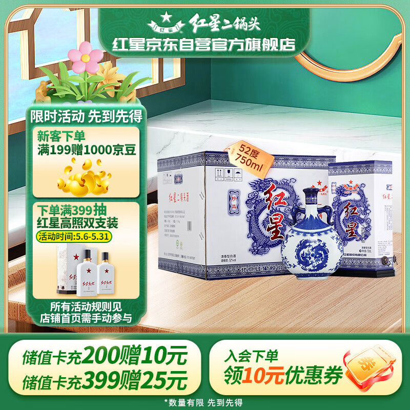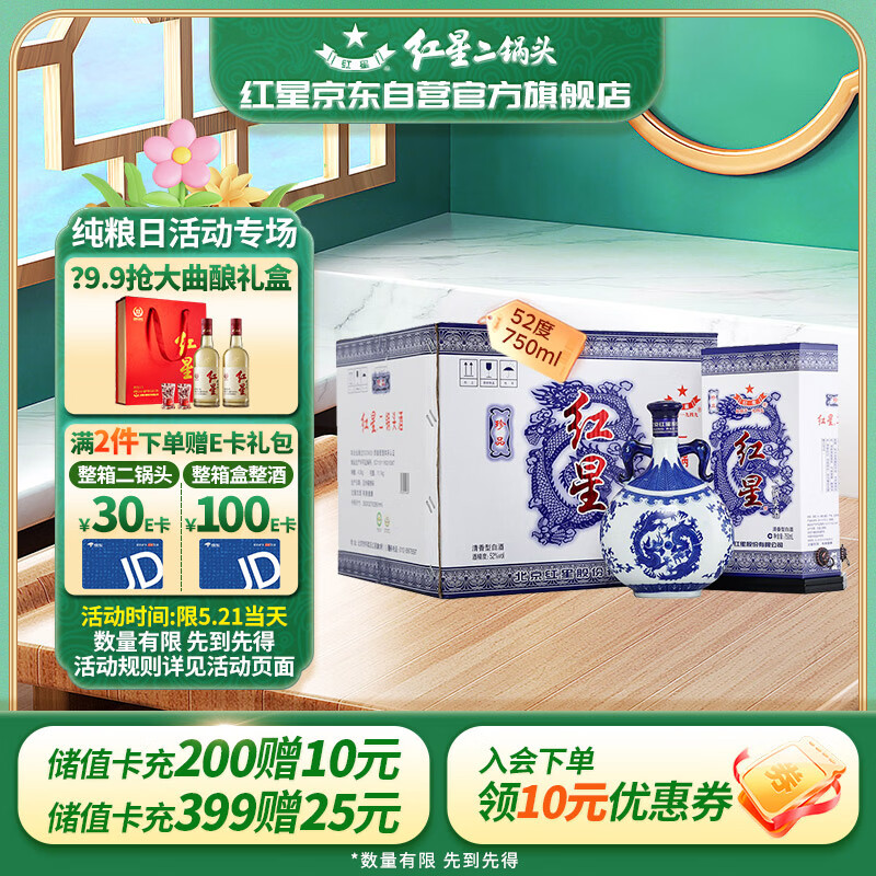 红星二锅头青花瓷 清香型白酒 52度750ml*6瓶 整箱装送礼价格:1799.00元!