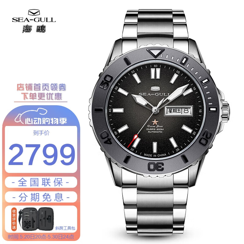海鸥(SEAGULL)手表男士自动机械表 男表礼物 海洋之星200米防水潜水腕表 海鲨银价格:2899.00元!