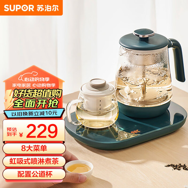 苏泊尔(SUPOR) 煮茶器煮茶壶 1L蒸汽喷淋式蒸茶壶养生壶电水壶热水壶304不锈钢烧水壶茶具黑茶 SW-10C11价格:229.00元!
