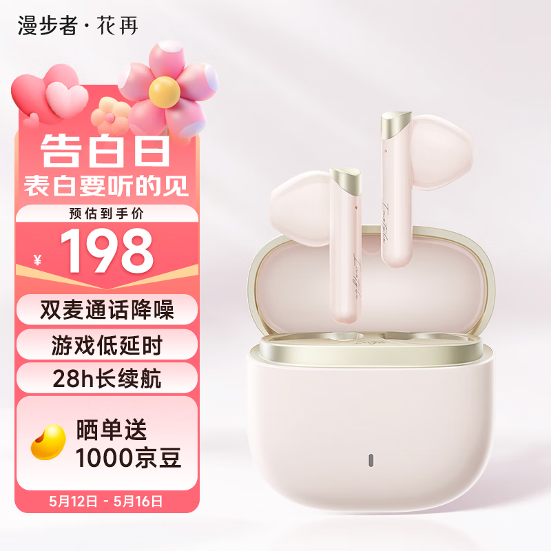 漫步者花再 Magic Air 真无线蓝牙耳机 游戏耳机 半入耳式耳机 适用苹果华为小米 薄樱粉价格:193.00元!