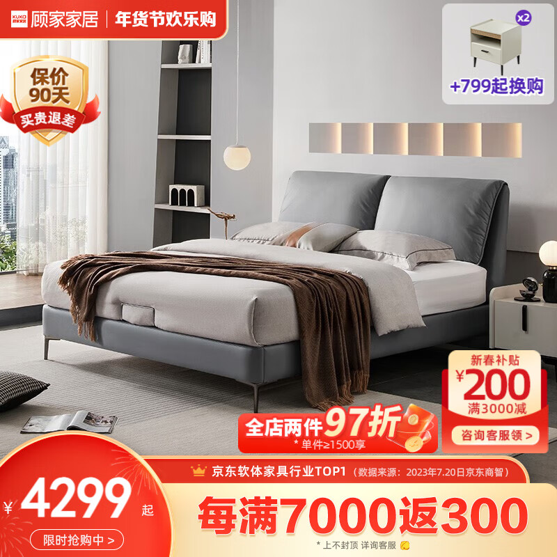 顾家家居科技布排骨架软床DS9018B+M0081+床头柜夜幕灰1.8米春节后发货价格:4299.00元!