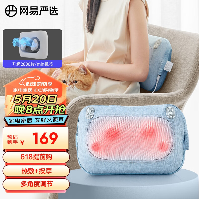 网易严选腰部按摩器 颈椎按摩器按摩仪颈部按摩器 按摩垫腰部肩部全身按摩靠垫 冰岛蓝 520情人节礼物价格:199.00元!