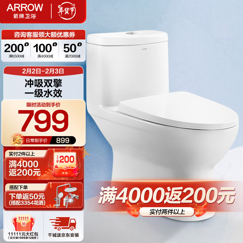 箭牌(ARROW)抽水马桶家用虹吸坐便器小尺寸普通座便 小户型卫生间坐厕AE1126L价格:1039.00元!