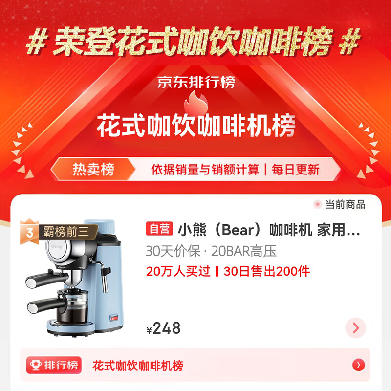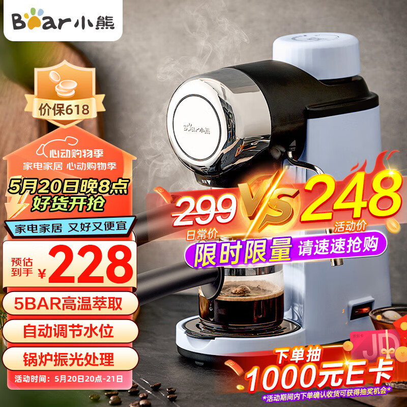 小熊(Bear)咖啡机 家用全半自动意式小型打奶泡咖啡机5Bar泵压式高压萃取 生椰拿铁 美式咖啡 KFJ-A02N1价格:228.00元!