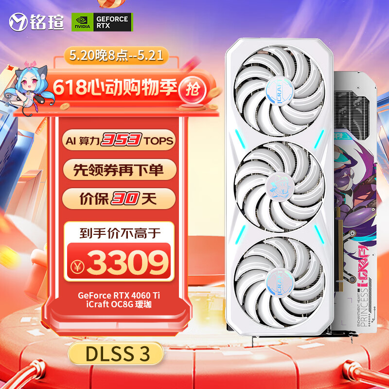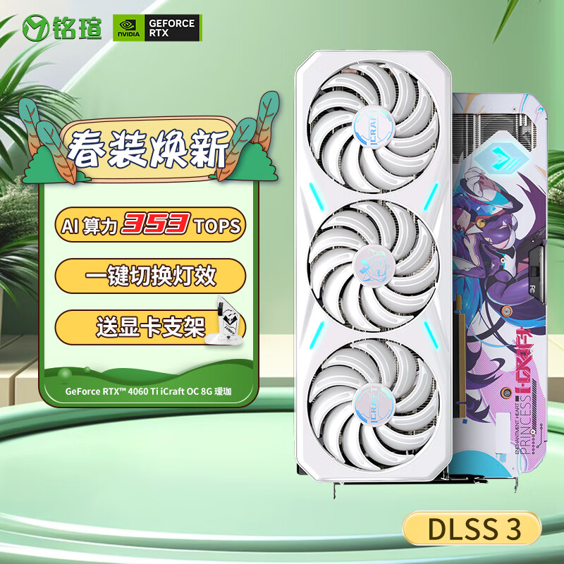 铭瑄(MAXSUN)GeForce RTX 4060 Ti iCraft OC 8G 瑷珈 DLSS 3 电竞游戏设计渲染智能学习直播电脑独立显卡价格:3469.00元!