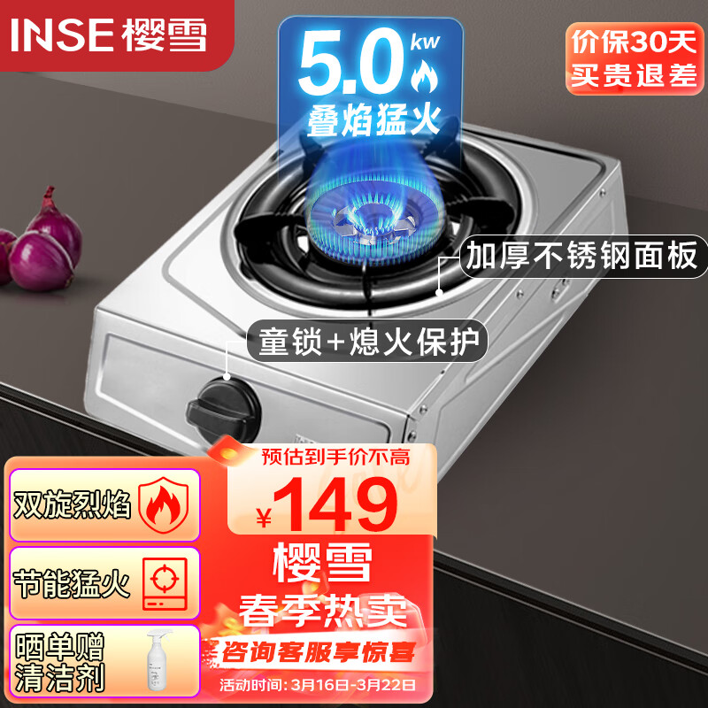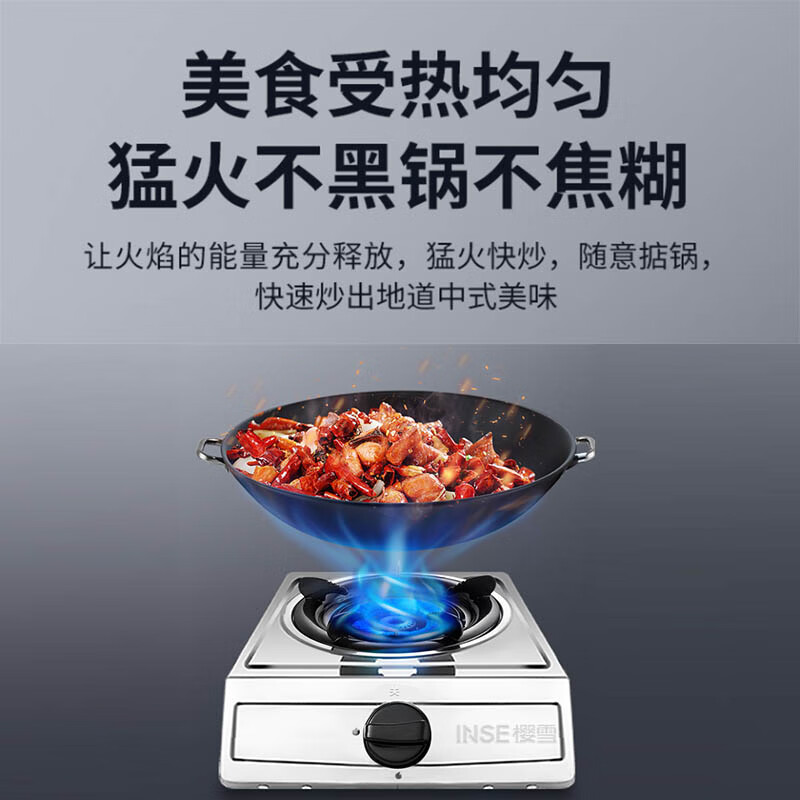 樱雪(INSE)燃气灶单灶 不锈钢面板 台式煤气灶 5.0kW大火力 家用猛火节能单眼灶 T2121天然气价格:139.00元!