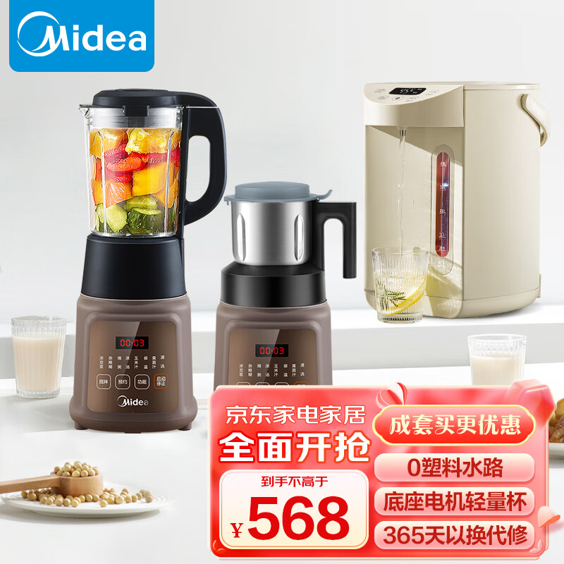 美的(Midea)0塑料水路电水瓶破壁机套装 电热水壶316L不锈钢 大容量控温保温恒温烧水壶电热水瓶 家用豆浆机价格:568.00元!