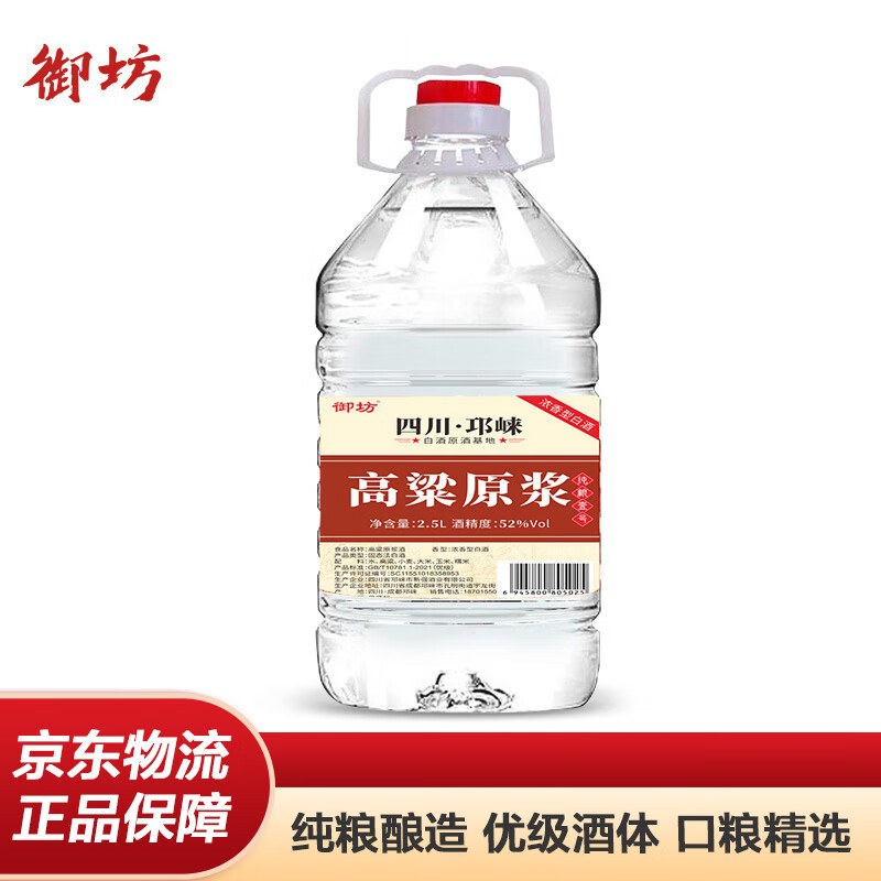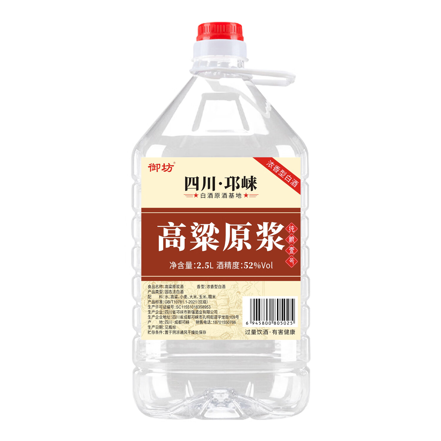 御坊高粱原浆 桶装酒纯粮食酒 四川红高粱 浓香型 52度 散酒白酒 2.5L价格:58.00元!