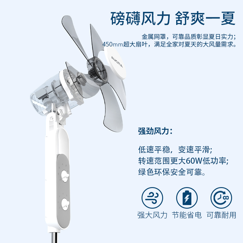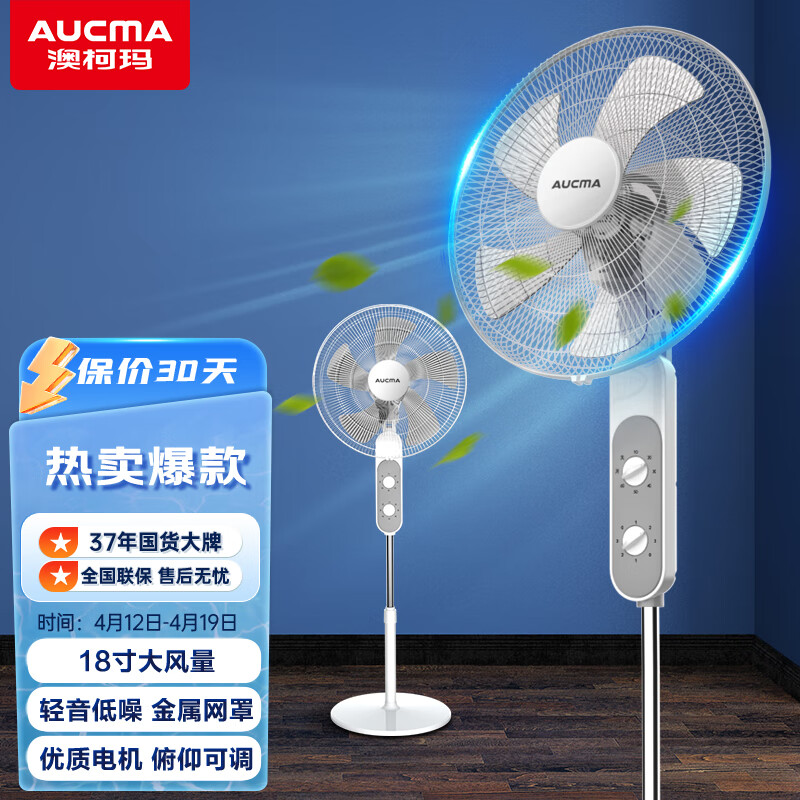 澳柯玛(AUCMA)电风扇家用节能落地扇学生立式大风量客厅宿舍18吋机械五叶电扇大风量空气循环扇FS-45H210价格:195.00元!