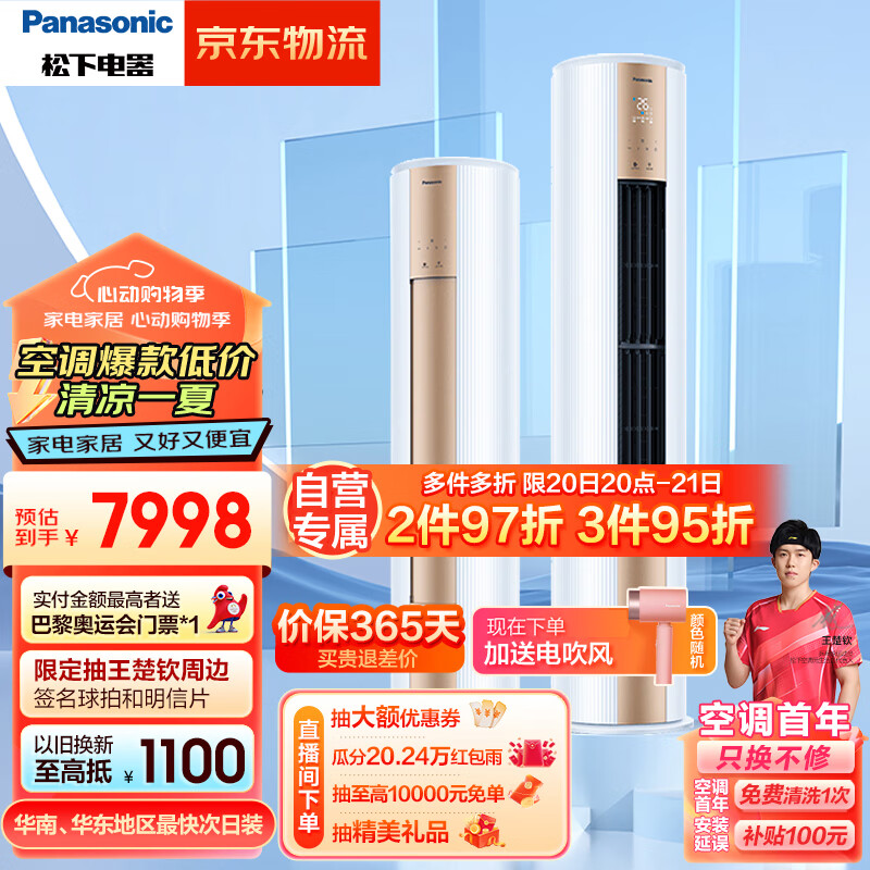 松下(Panasonic)空调 净悦星3匹新三级能效 圆柱立式柜机客厅空调变频 纳诺怡除菌洁净 WiFi 以旧换新 ZY72F330N价格:7998.00元!