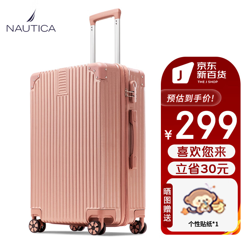NAUTICA行李箱男大容量32英寸拉杆箱万向轮出差女士旅行箱玫瑰金密码皮箱价格:329.00元!