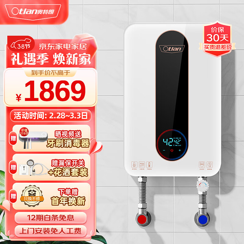 奥特朗(otlan)F17S-Z70B 即热式电热水器 家用小型速热免储水 快热式恒温淋浴机【0-7KW智能变频】价格:1869.00元!