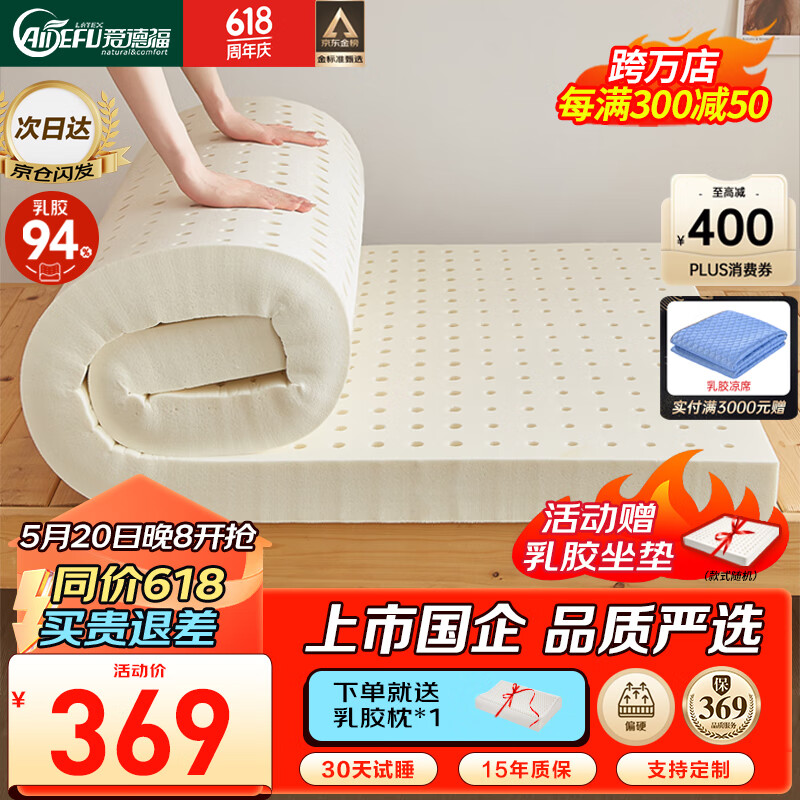 爱德福乳胶床垫泰国进口天然乳胶 榻榻米1.5m1.8单双人90*190*5(95D)价格:369.00元!