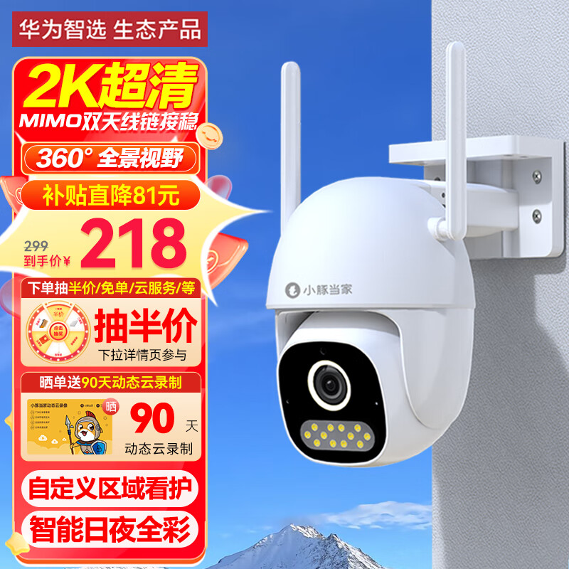 华为智选 小豚当家2K室外无线摄像头家用300万 监控器360度无死角带夜视全景户外防水高清可对话 手机远程价格:217.90元!
