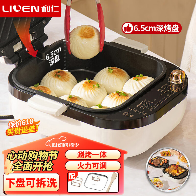 利仁(Liven)电饼铛家用65mm加深电饼档下盘可拆涮烤一体锅多功能电热锅电火锅电炒锅电饼锅大尺寸LR-D2316价格:239.00元!