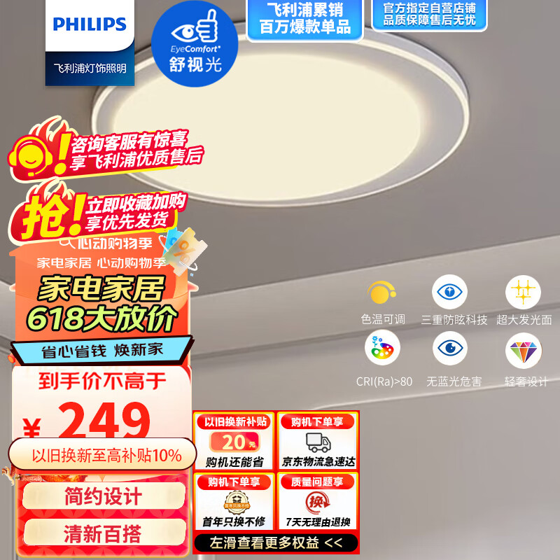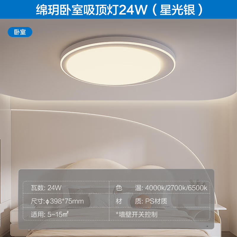 飞利浦(PHILIPS)LED吸顶灯卧室灯书房客厅灯北欧奶油风灯具24W三色银边绵玥价格:479.00元!
