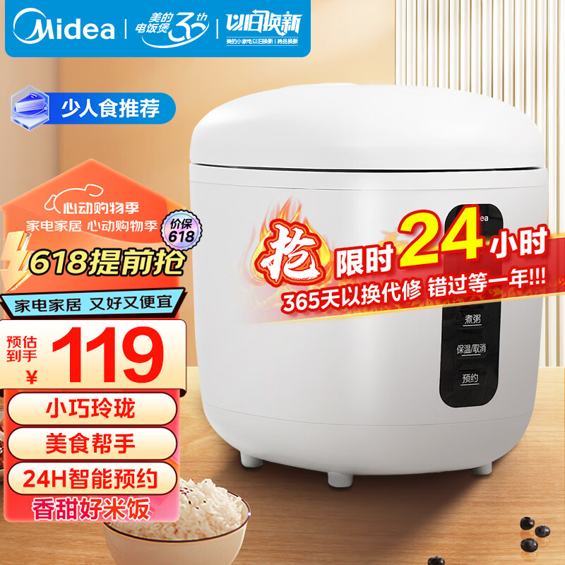 美的 (Midea)电饭煲电饭锅0.8L小容量迷你1-2人便携单人宿舍旅行FB08M301价格:119.00元!