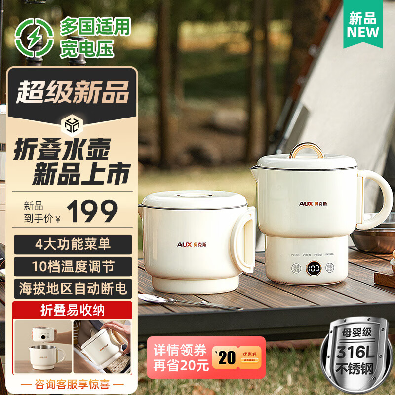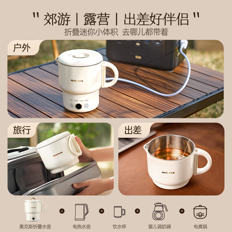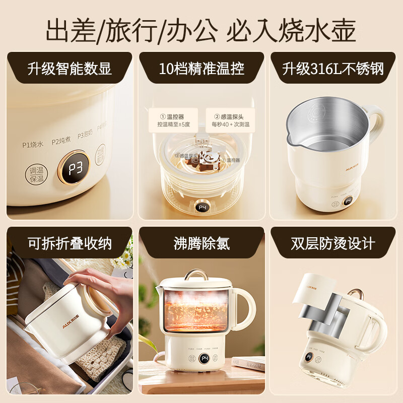 奥克斯便携式烧水壶电水壶折叠水壶电热水壶迷你便携旅行出316L不锈钢智能防干烧水壶保温AAS-05ASBP01价格:199.00元!