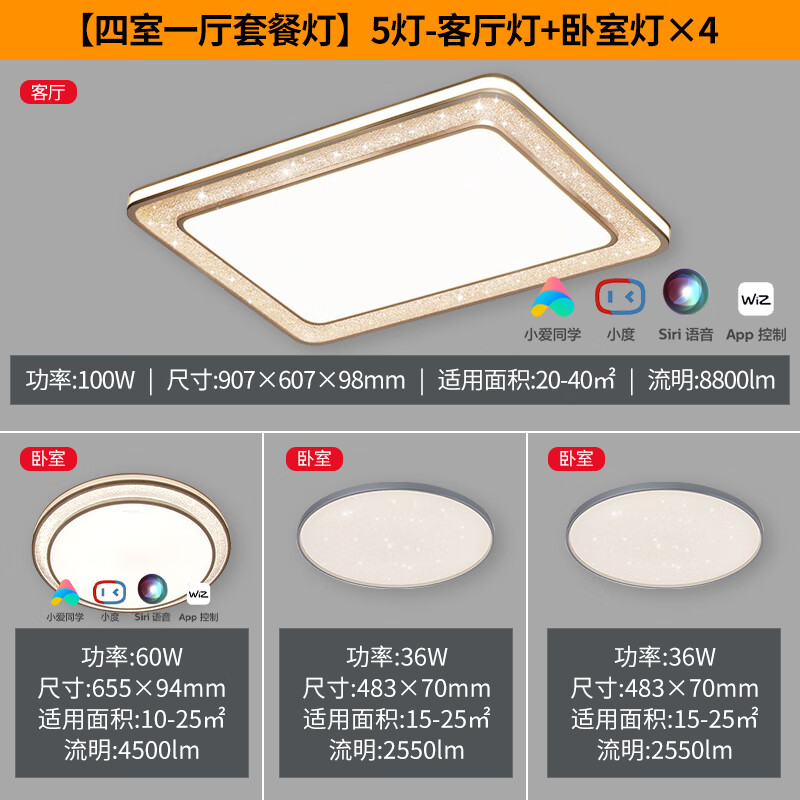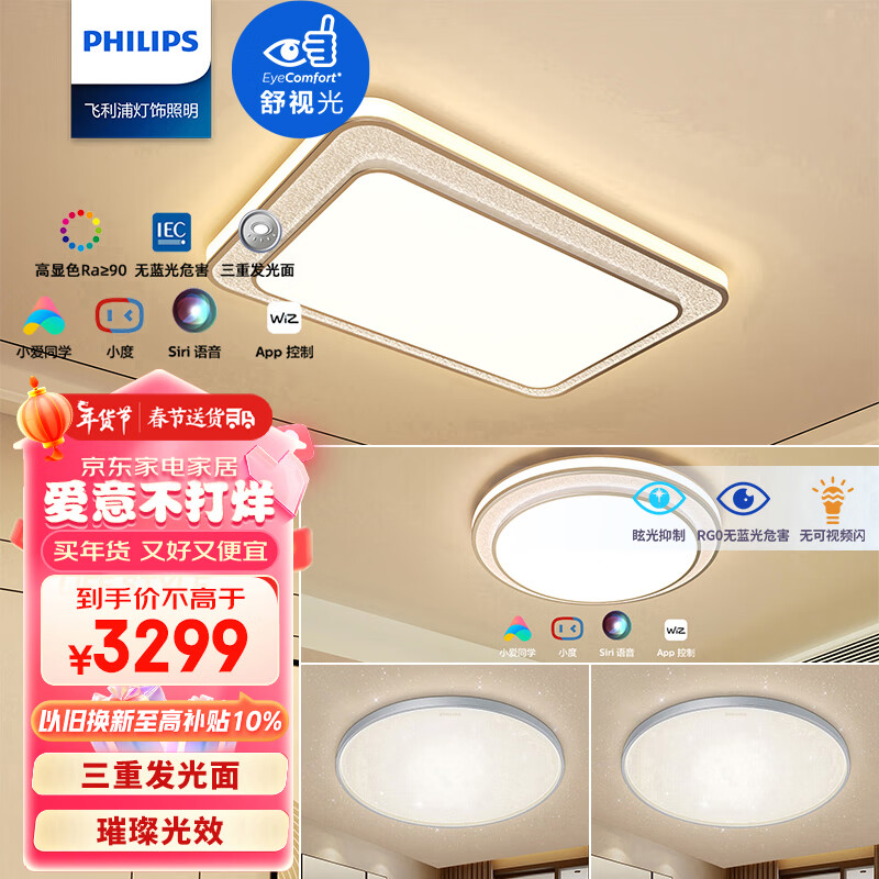飞利浦led吸顶灯超薄客厅灯餐厅卧室灯智控调光灯具套餐三室一厅 悦恒价格:4749.00元!