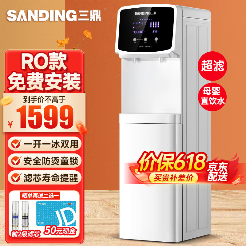 三鼎 饮水机家商两用净水器一体办公直饮机商用RO反渗透过滤立式净饮机烧开水器SDROG-209B价格:1599.00元!