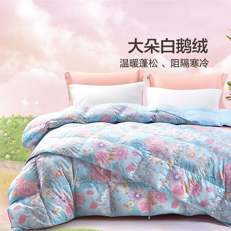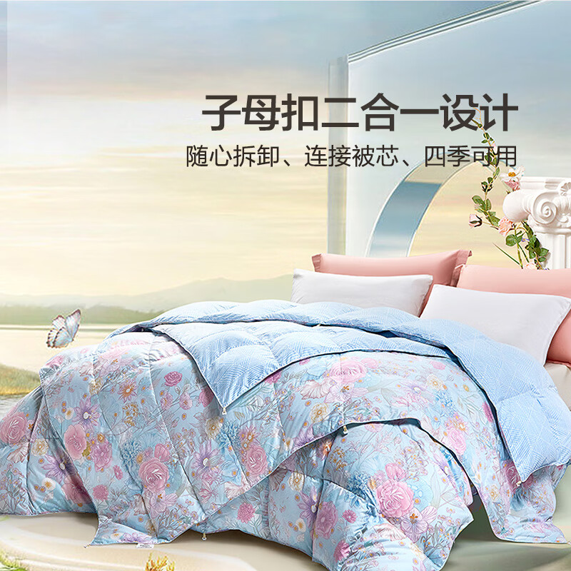 富安娜 仙境 95%白鹅绒羽绒被 二合一子母被加厚被 1100g填充 203*229cm蓝价格:4699.00元!