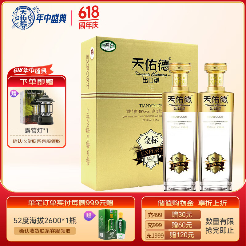 商品名称:天佑德金标出口型45度750ml*2瓶礼盒装