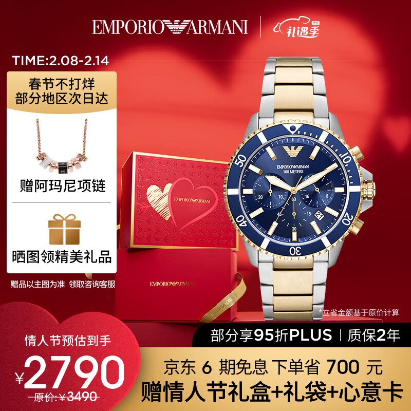 安普里奥·阿玛尼(Emporio Armani)手表男 水鬼系列钢带石英时尚商务休闲男士腕表 情人节礼物AR11362价格:3090.00元!