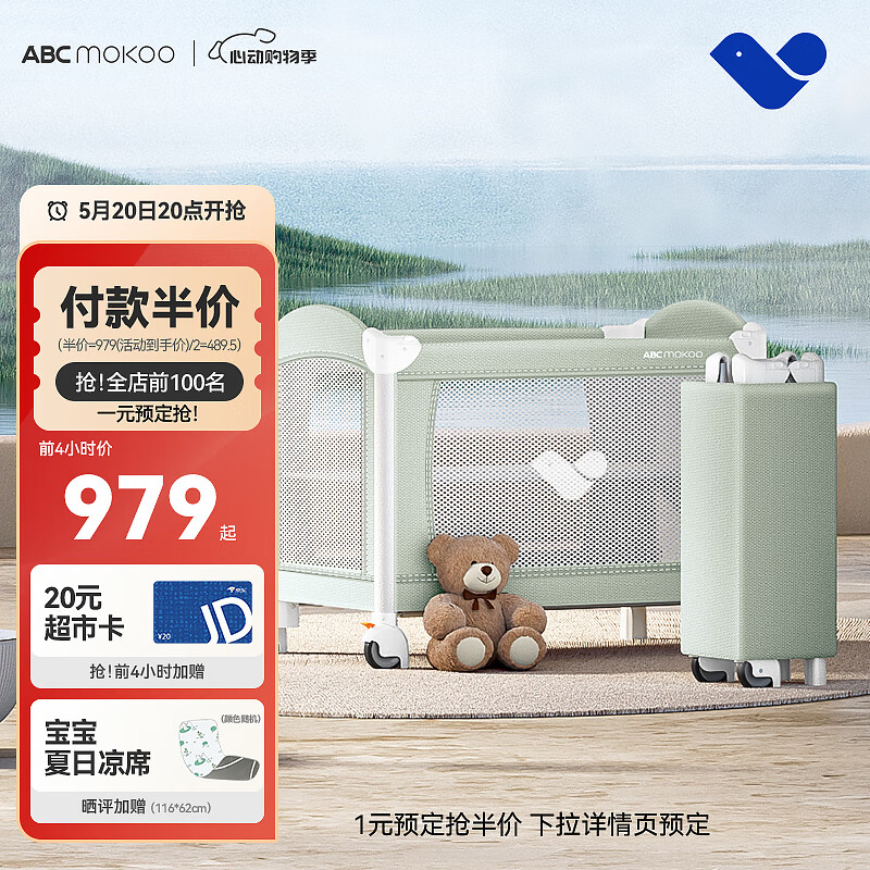 ABCMOKOO折叠婴儿床拼接大床多功能新生便携可移动宝宝床-莫兰迪绿PRO款价格:1728.00元!