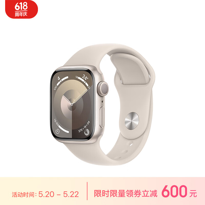 Apple/苹果 Watch Series 9 智能手表GPS款41毫米星光色铝金属表壳 星光色运动型表带S/M MR8T3CH/A价格:2999.00元!
