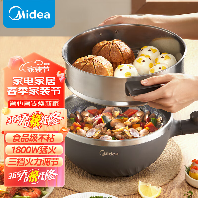 美的(Midea)电炒锅 多用途锅 电蒸锅 电煮锅 电火锅 家用蒸锅多功能锅炒菜锅 蒸煮一体锅 不花芯MC-HGS2812价格:289.00元!