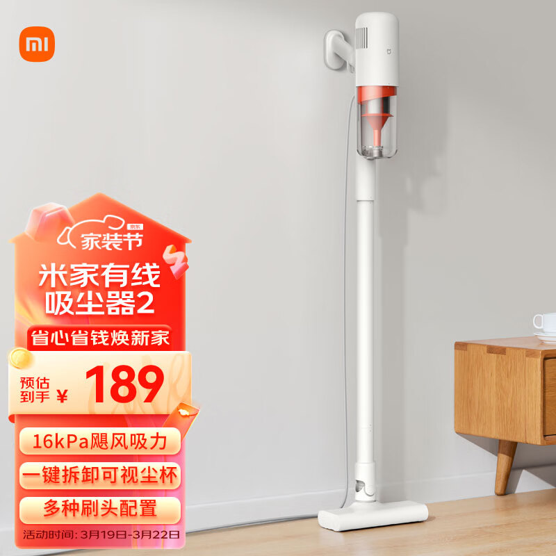米家 小米有线吸尘器2 吸尘器家用升级风道一键拆卸可视化尘杯纤薄机身除尘价格:189.00元!