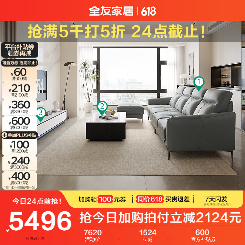 全友家居 简约客厅3件套装102710皮沙发岩板茶几电视柜主柜客厅家具价格:7620.00元!