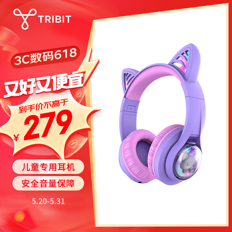 Tribit 头戴式无线蓝牙儿童耳机 英语网课教育学习麦克风低分贝学生耳机价格:329.00元!