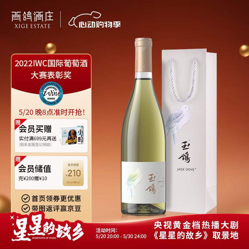 西鸽酒庄玉鸽宋韵国产干白葡萄酒750ml单瓶装 宁夏贺兰山精品红酒送礼价格:142.00元!