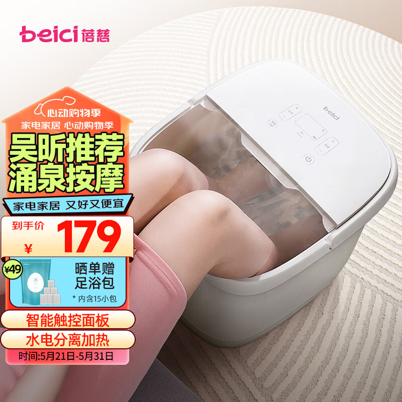 蓓慈(beici)泡脚桶自动加热滚轮按摩足浴盆变频恒温洗脚桶胶塞排水洗脚盆送父母生日520情人节礼物305C价格:179.00元!