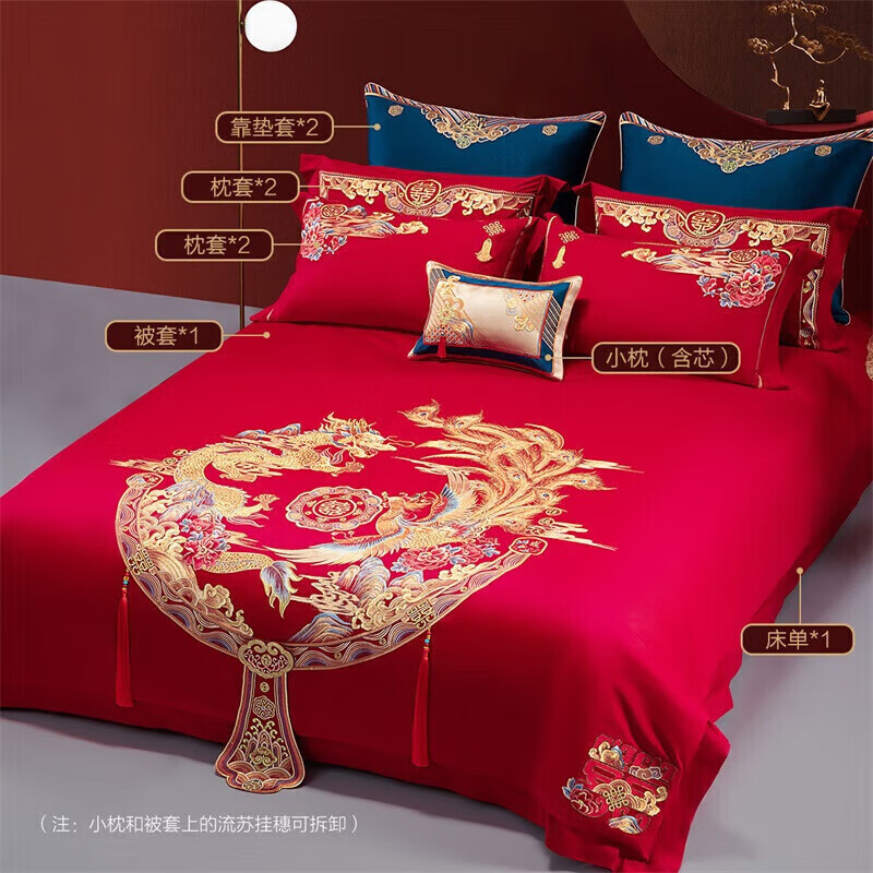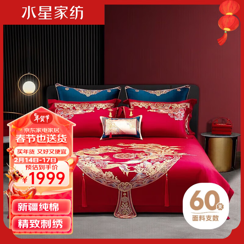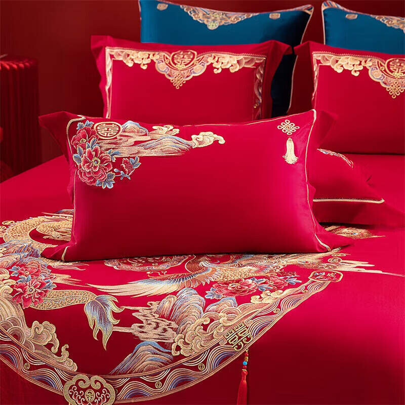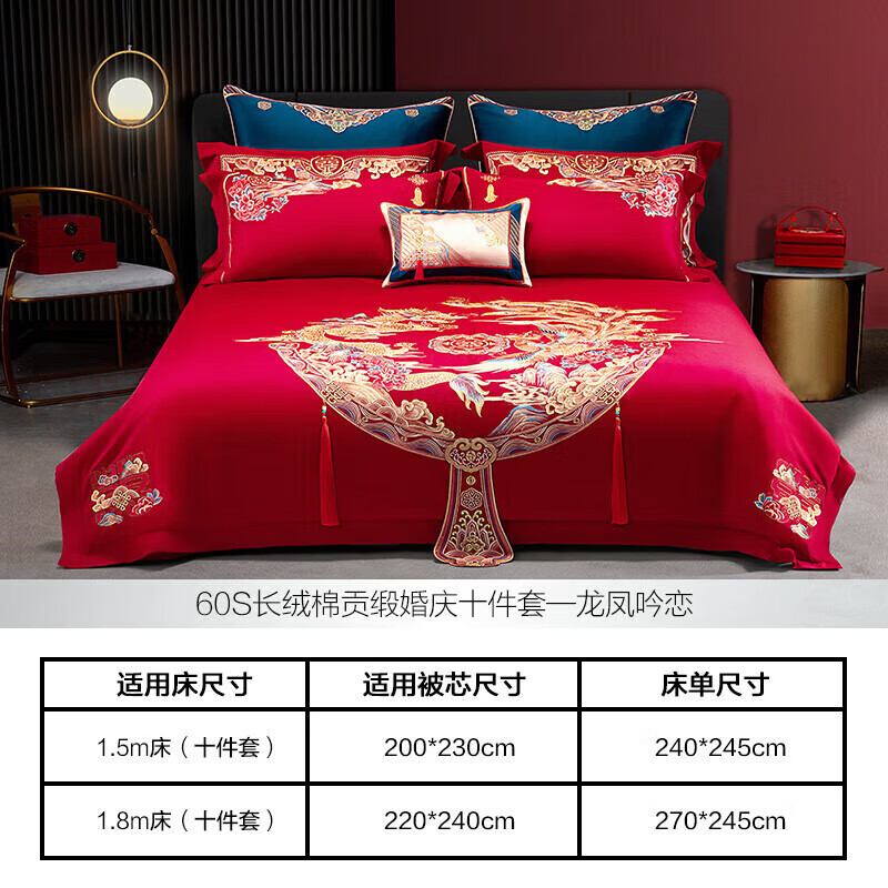 水星家纺60S长绒棉婚庆床上用品新婚长绒棉十件套大红床单被套1.8吟恋价格:3699.00元!