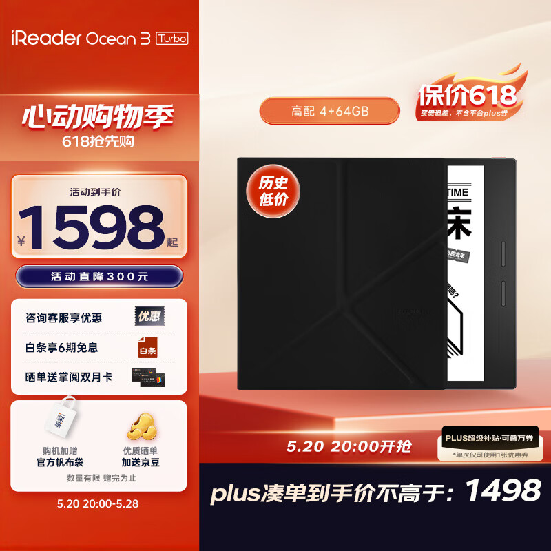 掌阅iReader Ocean3 Turbo 7英寸电子书阅读器墨水屏电纸书电子纸看书学习4+64GB儒雅黑支架磁吸套装价格:1598.00元!