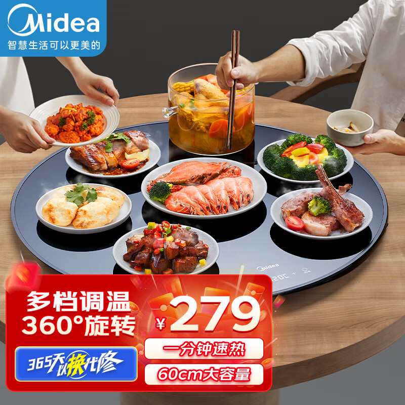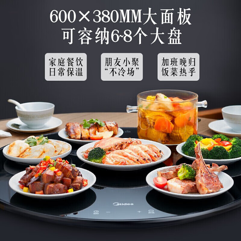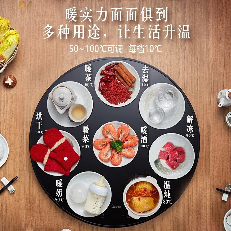 美的暖菜板 热菜板饭菜保温板家用 加热桌垫1分钟速热保温菜板热饭不挑锅具 调温圆形转盘可选暖茶神器 【旋转+调温】 60cm价格:509.00元!