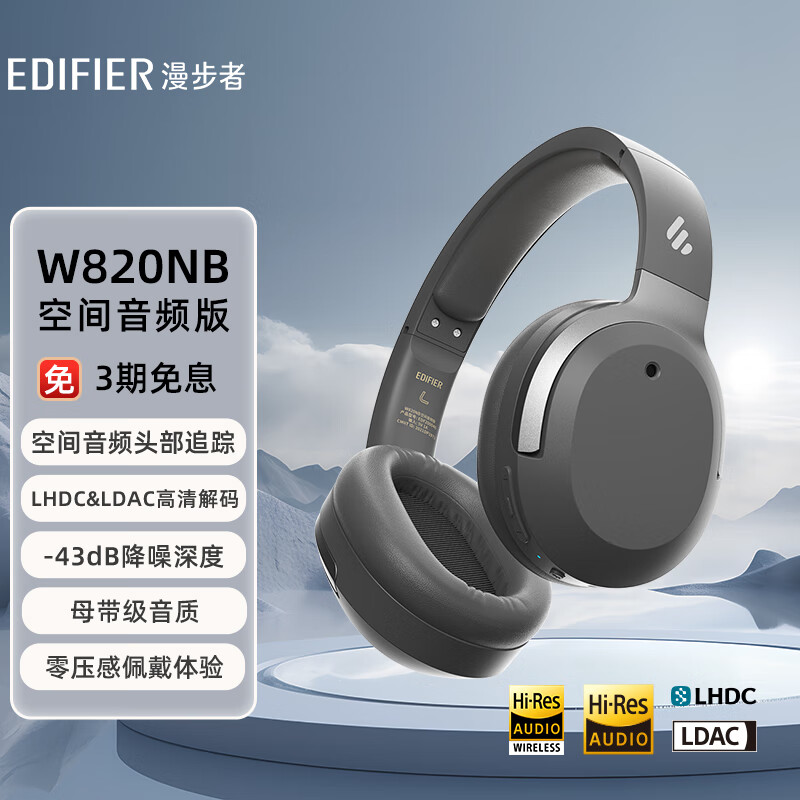 漫步者(EDIFIER)W820NB空间音频版 头戴式主动降噪蓝牙耳机 双金标认证 蓝牙5.3 手机电脑笔记本耳机 银月灰价格:419.00元!