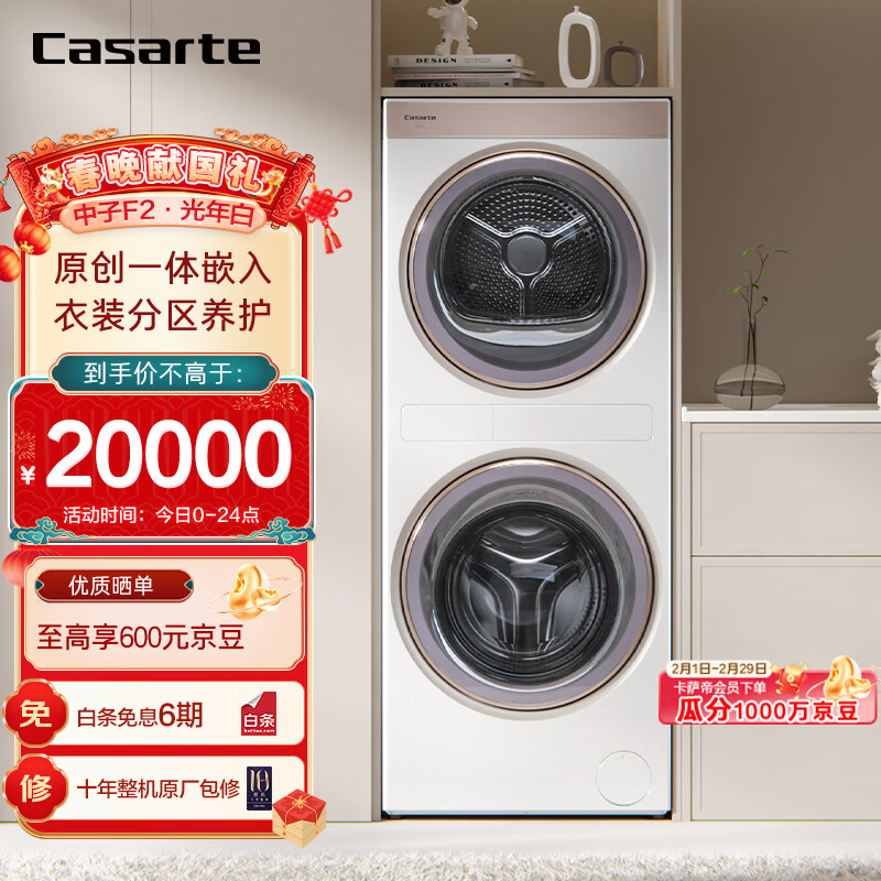 卡萨帝(Casarte)【春晚同款】光年中子F2和美洗干集成机 12+12公斤 3D透视烘干 1.5米平嵌 C9 YF12BL12W2EU1价格:19999.00元!