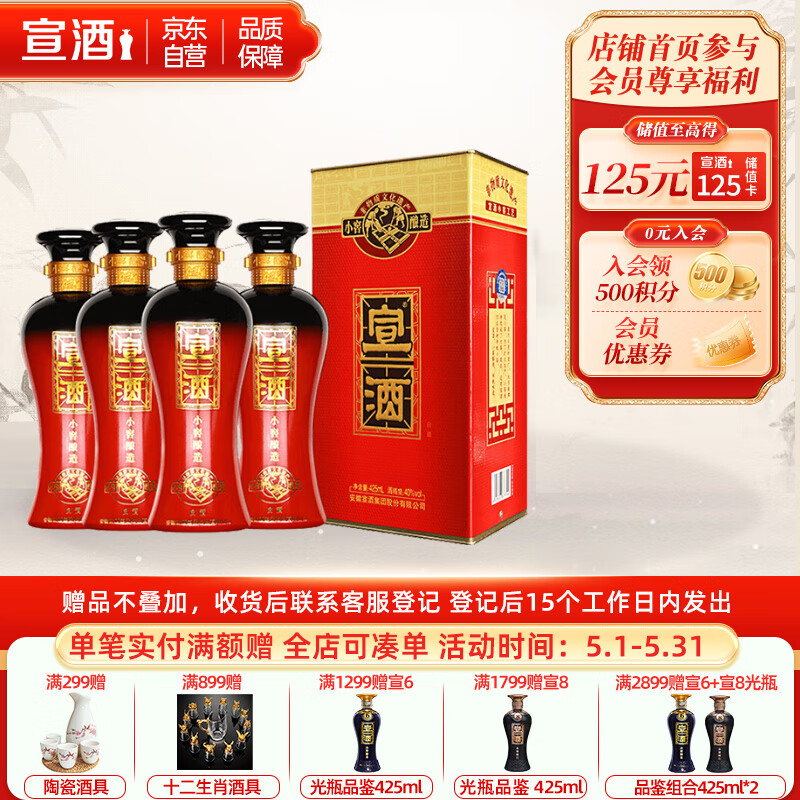 宣酒 红宣 浓香型白酒 40度 425ml*4瓶 整箱装 小窖酿造价格:263.00元!