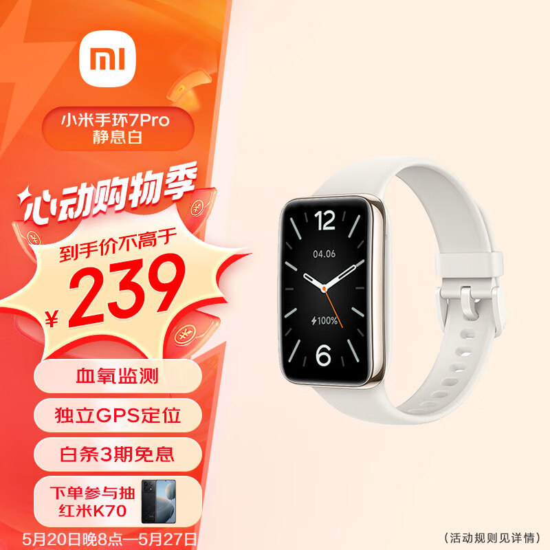 小米手环 7Pro 静息白 智能手环运动手环 独立GPS定位 117种运动模式 血氧监测 离线支付 电子门禁卡价格:218.00元!