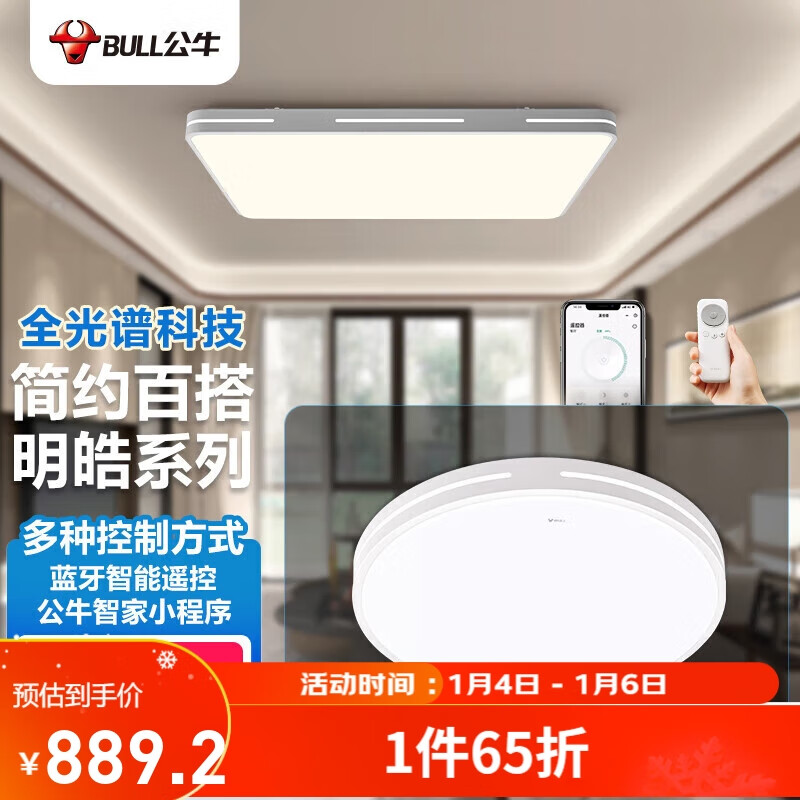 公牛(BULL)LED吸顶灯全光谱蓝牙遥控明皓MX-C130E-CS客厅灯卧室灯(130W+48W)价格:1368.00元!