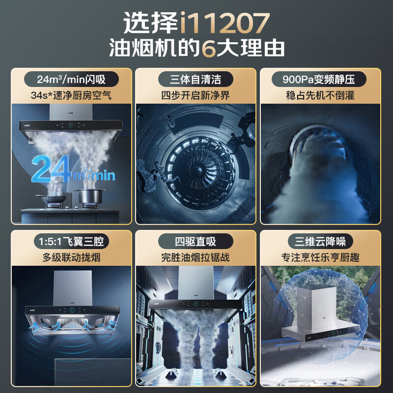 华帝(VATTI)变频三腔·创世S7欧式抽油烟机灶具套装 24立方大吸力烟灶燃气灶热水器套装 自动洗厨房三件套 i11207+75B+151-16(天然气)价格:5099.00元!