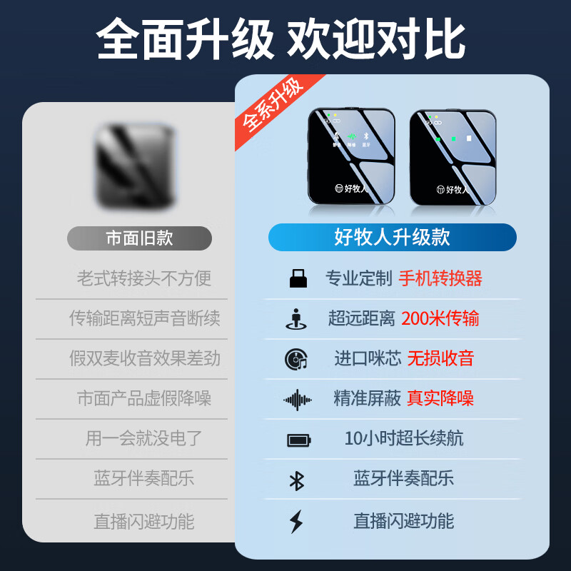 好牧人 无线麦克风领夹式小蜜蜂收音麦声卡直播唱歌手机相机短视频专业录音设备户外采访降噪蓝牙话筒 单人版丨一拖一【手机/相机通用】无线收音+直播降噪价格:179.00元!